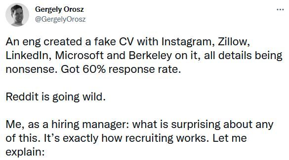 U komentarima gdje je dodatno pojasnio situaciju, najviše se osvrnuo na pominjanje velikih imena u prijavi. Pedigre je tu ključna riječ. Ma šta vi napisali u CV-u, bilo to i najveća izmišljotina na svijetu, pada u vodu ukoliko ste radili za nekog od svjetski poznatih giganta.