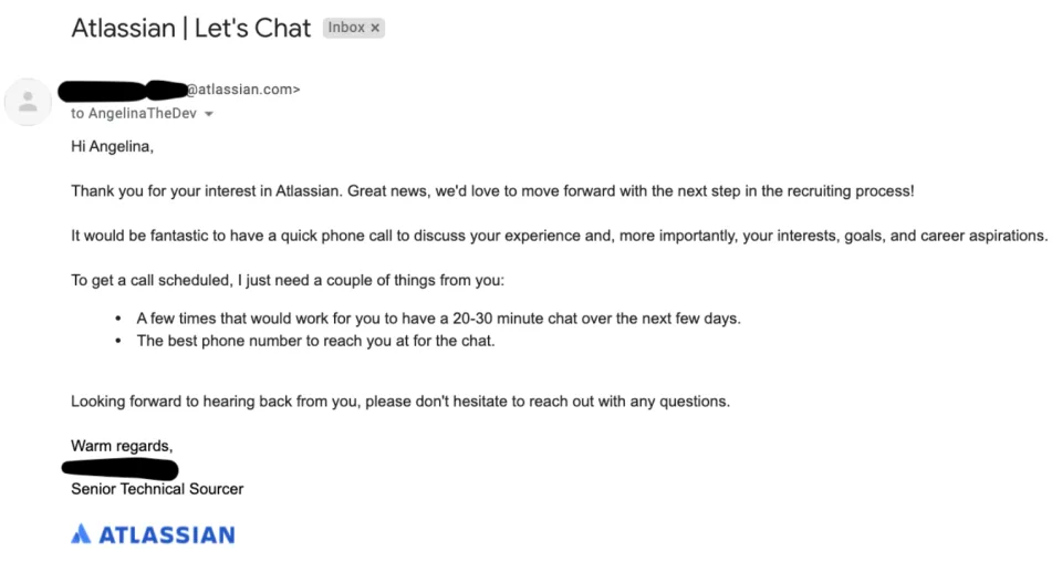 Dobila je odgovor od top tech firmi u Americi, među kojima su DropBox, RobinHood, kao i GrubHub. Oglasio se i australijski gigant, Atlassian. Svi su oni bili oduševljeni i željeli da što pre organizuju intervju radi upoznavanja.