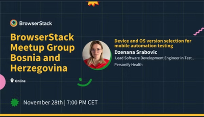 Details Join us for our QA meetup of the BrowserStack Meetup group in Bosnia and Herzegovina. Agenda:- Session: 7:00...
